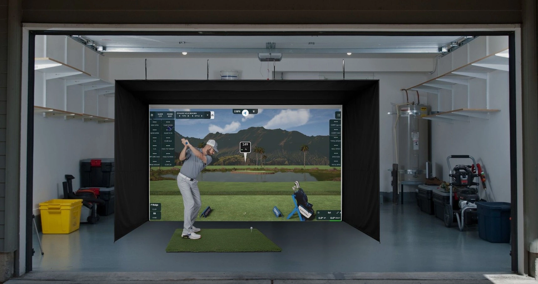 The LZ Roll-Up Golf Simulator Bay is especially popular in garage installations where space is limited or shared with vehicles, storage, or other activities.