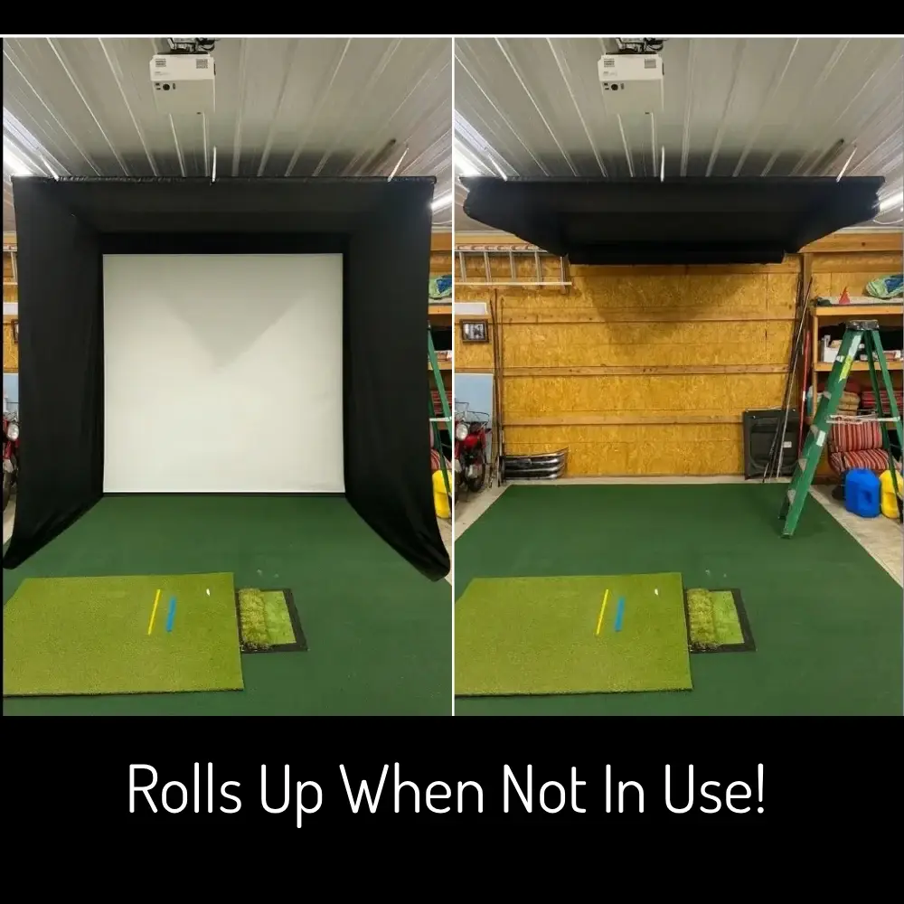 The LZ Roll-Up Golf Simulator Bay is designed for golfers who want a complete simulator setup without committing to a permanent enclosure.
